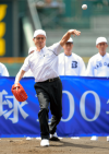 王さん、甲子園で始球式 久々マウンド、外角ストライク